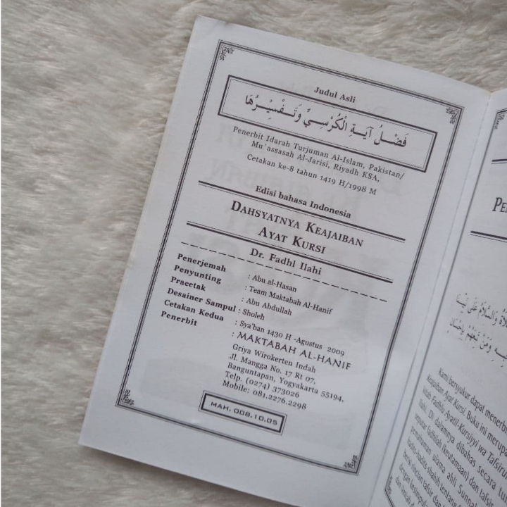 Silahkan simak buku “Dahsyatnya Keajaiban Ayat Kursi” yang mengetengahkan bahasan tuntas seputar fadhilah dan tafsir ayat kursi. Diawali dengan paparan hadits-hadits yang berkaitan dengan fadhilah ayat kursi, dilanjutkan dengan tafsir ayat kursi beserta penjelasannya, dan diakhiri dengan penutup dan kesimpulan. Semuanya dipaparkan secara ilmiyah, didasarkan pada hadits-hadits shahih, dan nukilan nukilan dari kitab-kitab tafsir serta karya-karya para ulama, sesuai dengan pemahaman para salafus shalih, sistematis, dan dengan bahasa yang mudah dipahami.