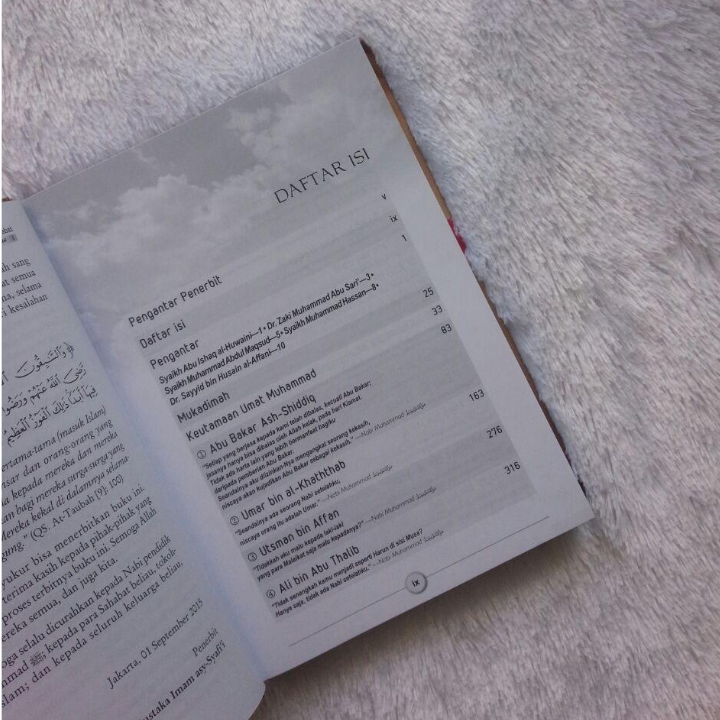 Kisah keteladanan mereka terpotret apik melalui goresan pena emas penulis buku ini, dimulai dari Khulafaur-Rasyidin, sepuluh Sahabat Nabi yang dijamin Surga, dan seterusnya dari para Sahabat Rasululullah yang mulia radhiyallahu ta’ala ‘anhum ajma’in.