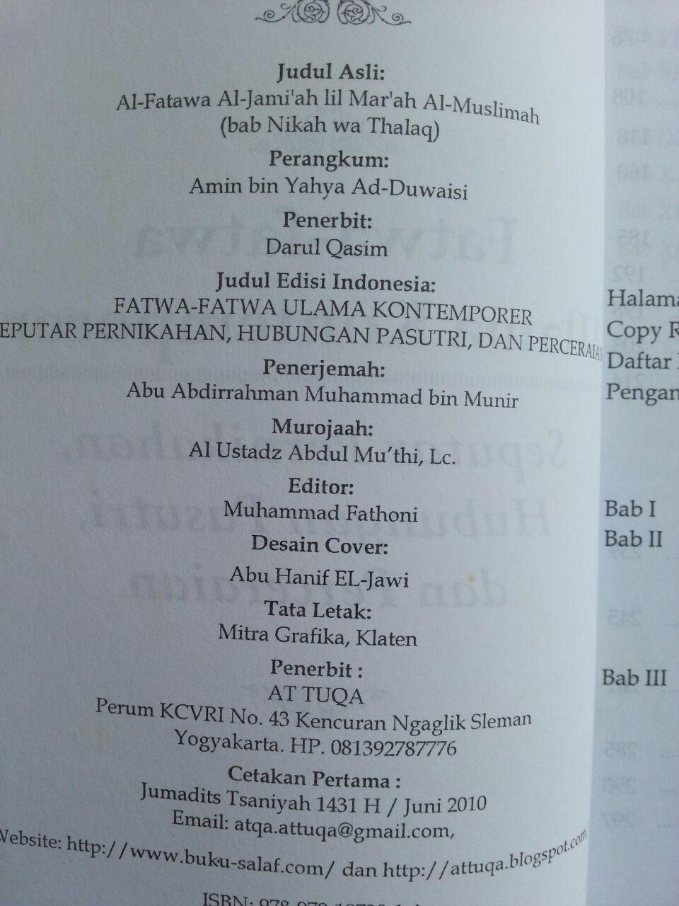 Judul Kitab Asli: Al-Fatawa Al-Jami’ah Lil Mar’ah Al-Muslimah (bab Nikah wa Thalaq)