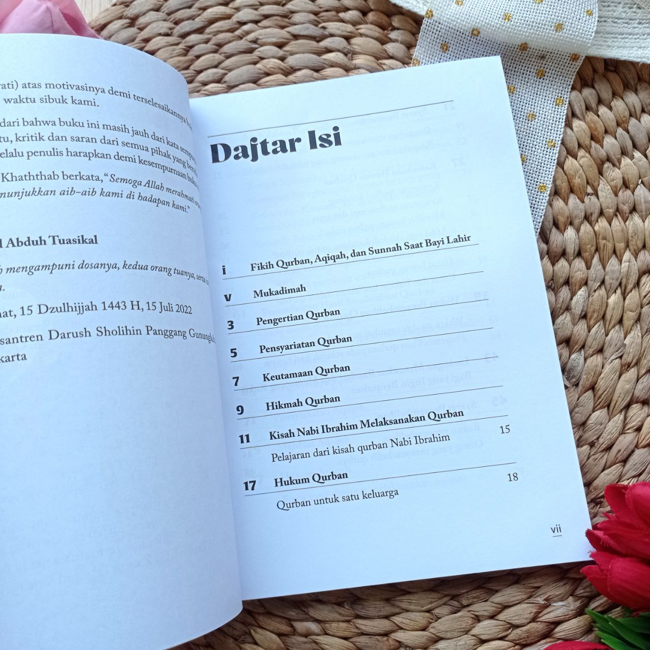 Buku ini berisi pembahasan fikih yang disertai dalil mengenai qurban dan aqiqah, serta amalan sunnah yang dilakukan saat bayi lahir.