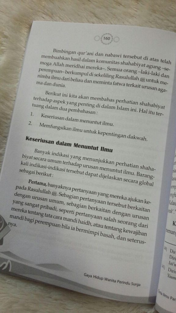 Buku “Gaya Hidup Wanita Perindu Surga” ini telah berhasil merekam jejak-jejak kemuliaan yang pernah menghiasi kehidupan para shahabiyah, generasi wanita sahabat, di zaman Rasulullah. Diharapkan para muslimah akan mampu mendulang ilmu-ilmu dan akhlak praktis dalam hidup keseharian, yang telah dipraktikkan oleh para shahabiyah, para wanita mulia didikan Nabi yang dibeberkan secara detail dalam buku ini. Sehingga buku ini merupakan buku istimewa yang layak dibaca para muslimah yang selalu merindukan surga!