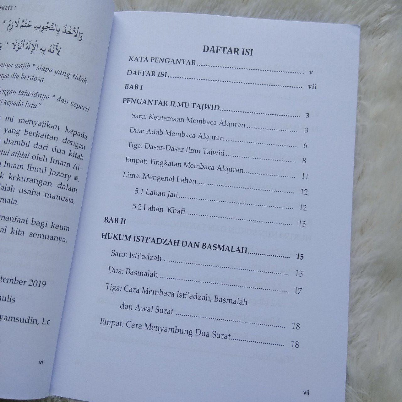 Buku ini menyajikan kepada pembaca hampir semua pembahasan yang berkaitan dengan ilmu tajwid. Sebagian besar materinya diambil dari dua kitab tajwid fenomenal yaitu manzhumah tuhfatul athfal oleh Imam Al-jamzun dan muqaddimah al-jazariyah oleh Imam Ibnul Jazary.