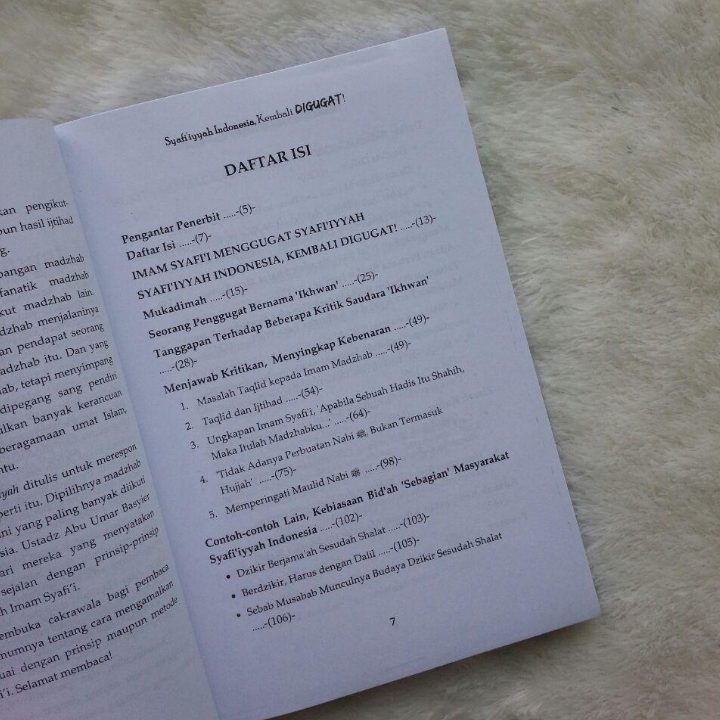 Buku diharapkan akan membuka cakrawala bagi pembaca khususnya dan para pembaca umumnya tentang cara mengamalkan hukum-hukum Islam yang sesuai dengan prinsip maupun metode yang dipegang oleh Imam Syafi’i.