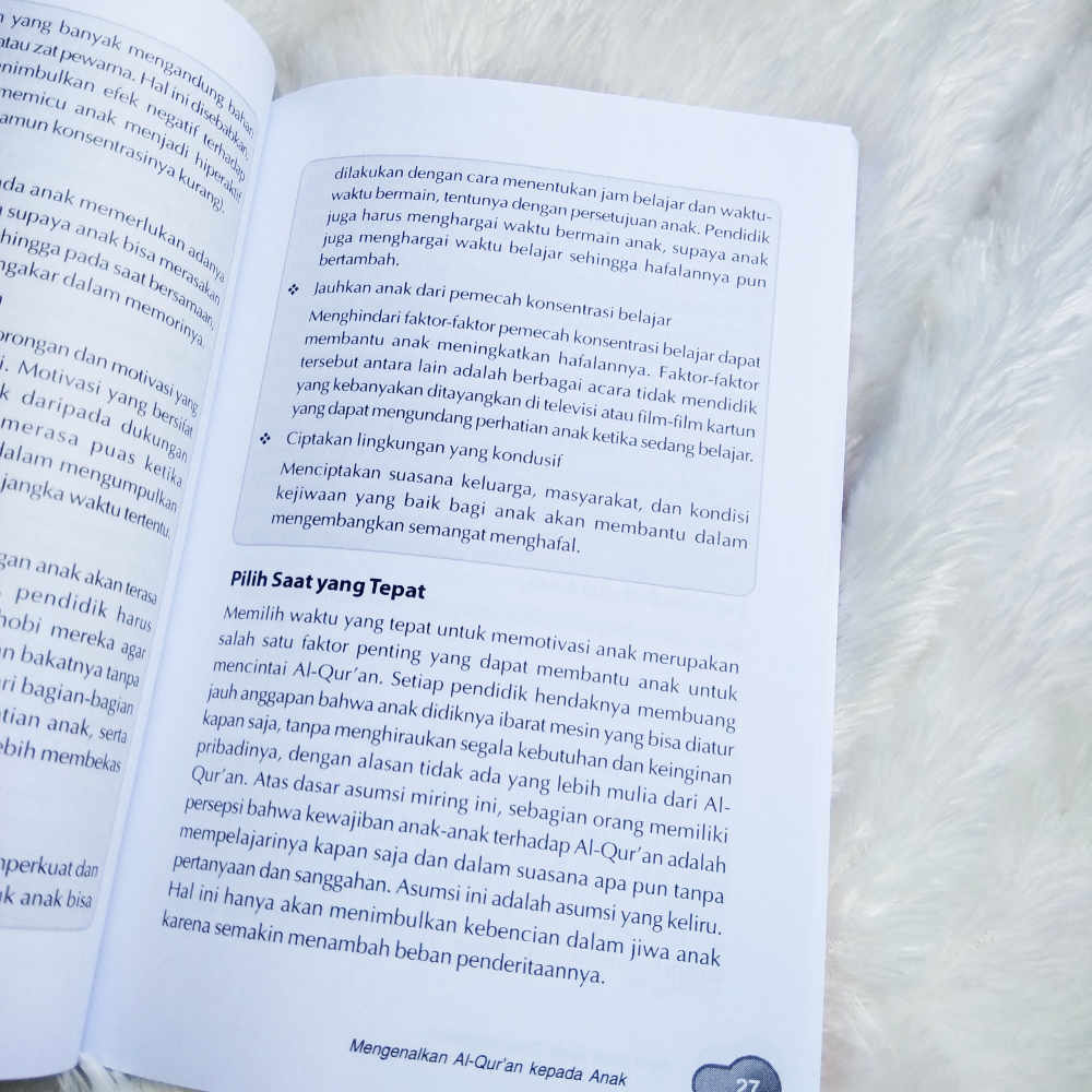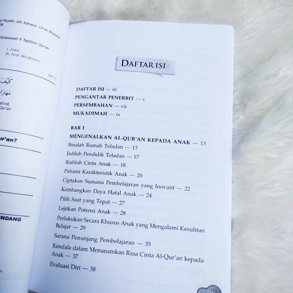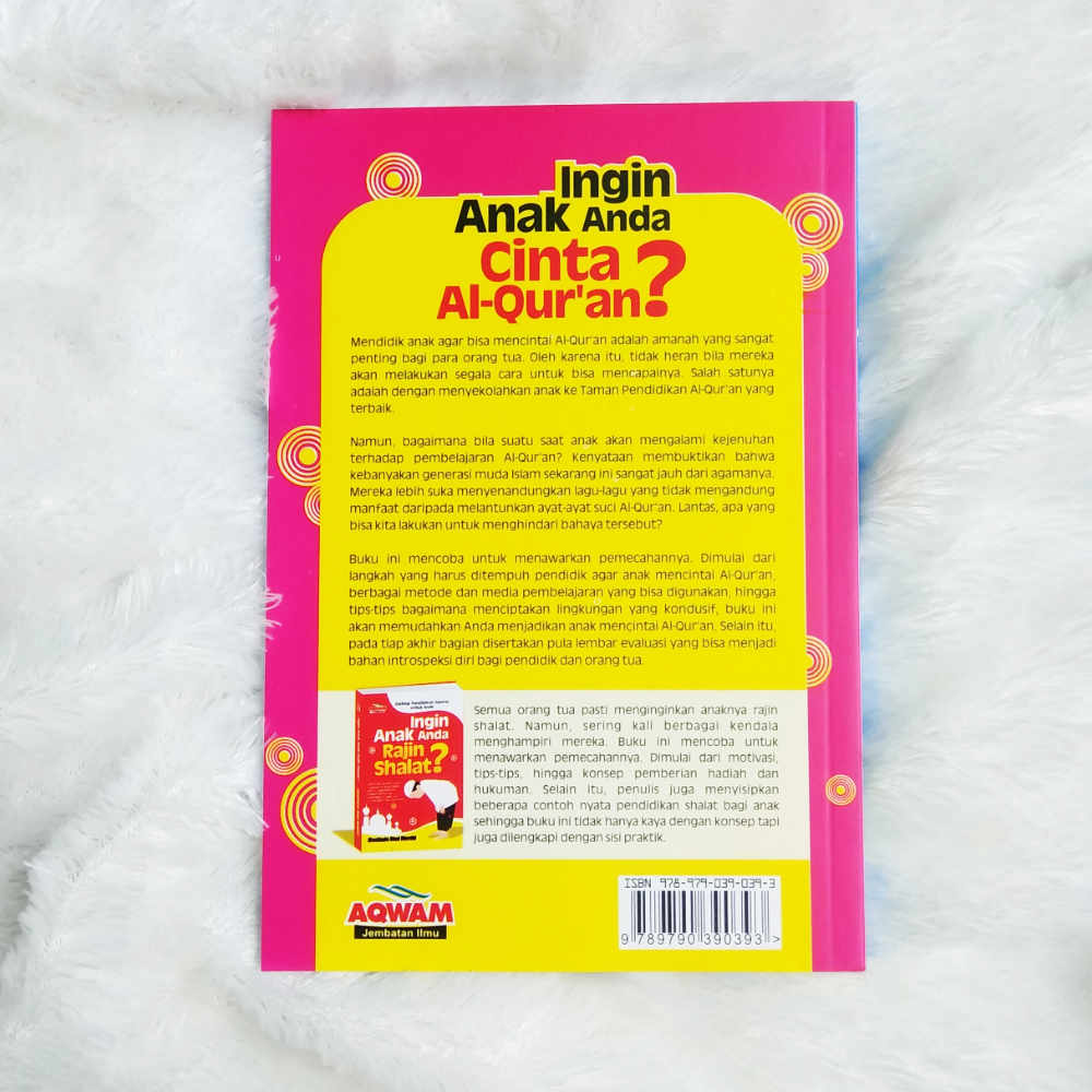 Buku ini mencoba untuk menawarkan pemecahannya. Dimulai dari langkah yang harus ditempuh pendidik agar anak mencintai Al-Qur’an, berbagai metode dan media pembelajaran yang bisa digunakan, hingga tips-tips bagaimana menciptakan lingkungan yang kondusif, buku ini akan memudahkan Anda menjadikan anak mencintai Al-Qur’an. Selain itu, pada tiap akhir bagian disertakan pula lembar evaluasi yang bisa menjadi bahan introspeksi diri bagi pendidik dan orang tua.