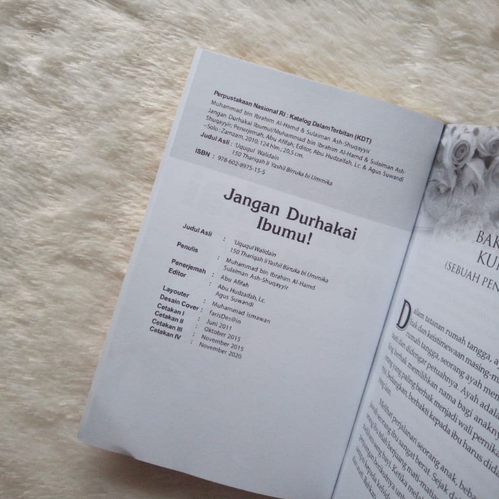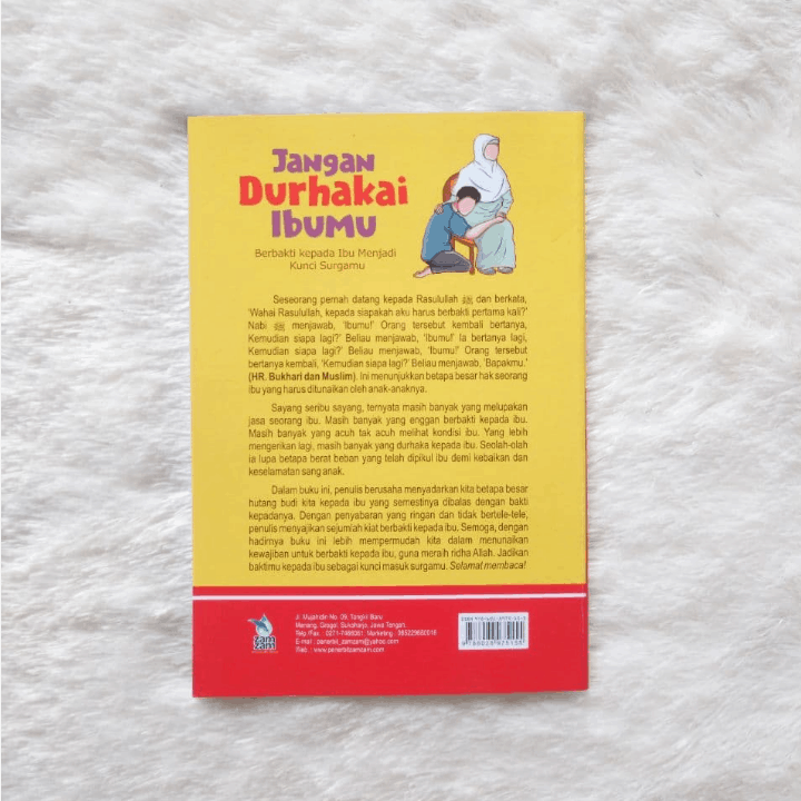 Buku ini, “Buku Jangan Durhakai Ibumu”, Buku ini ini lebih mempermudah kita dalam menunaikan kewajiban untuk berbakti kepada ibu, guna meraih ridha Allah. Jadikan baktimu kepada ibu sebagai kunci masuk surgamu.
