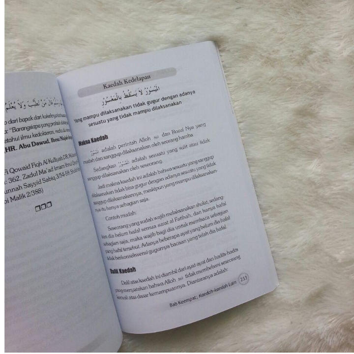Buku ini bisa dijadikan sebagai panduan untuk mempelajari ilmu fiqih. Didalamnya berisi kaidah-kaidah ilmu fiqih yang dibahas praktis dengan jelas, Pelajaran ilmu fiqih ini diistilahkan dengan Al-Qowa’id Al-Fiqhiyyah, semoga pembaca dapat mendulang faidah-faidah yang banyak dalam buku ini.