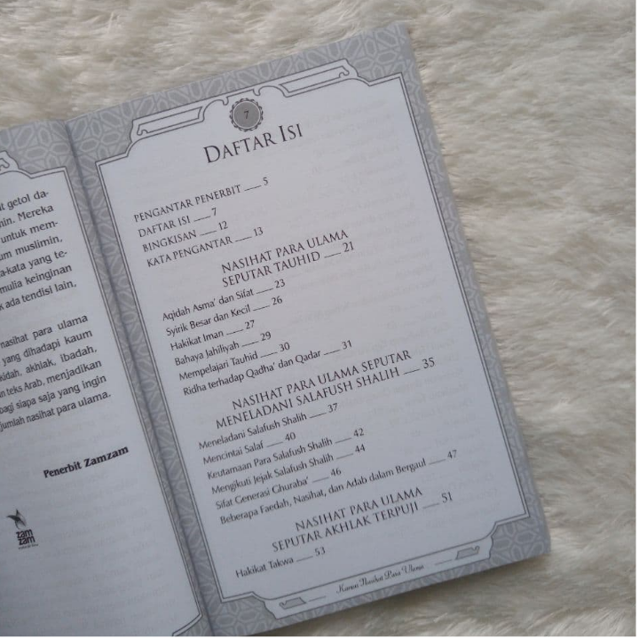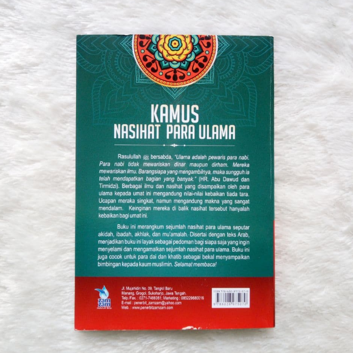 Buku ini merangkun sejumlah nasihat para ulama seputar aqidah, ibadah, akhlak, dan muamalah. Disertai dengan teks Arab, menjadikan buku ini layak sebagai pedoman bagi siapa saja yang ingin menyelami dan mengamalkan sejumlah nasihat para ulama. Buku ini juga cocok untuk para dai dan khatib sebagai bekal menyampaikan bimbingan kepada kaum muslimin. Selamat Membaca.