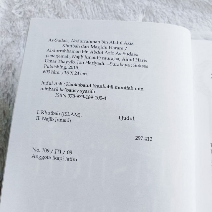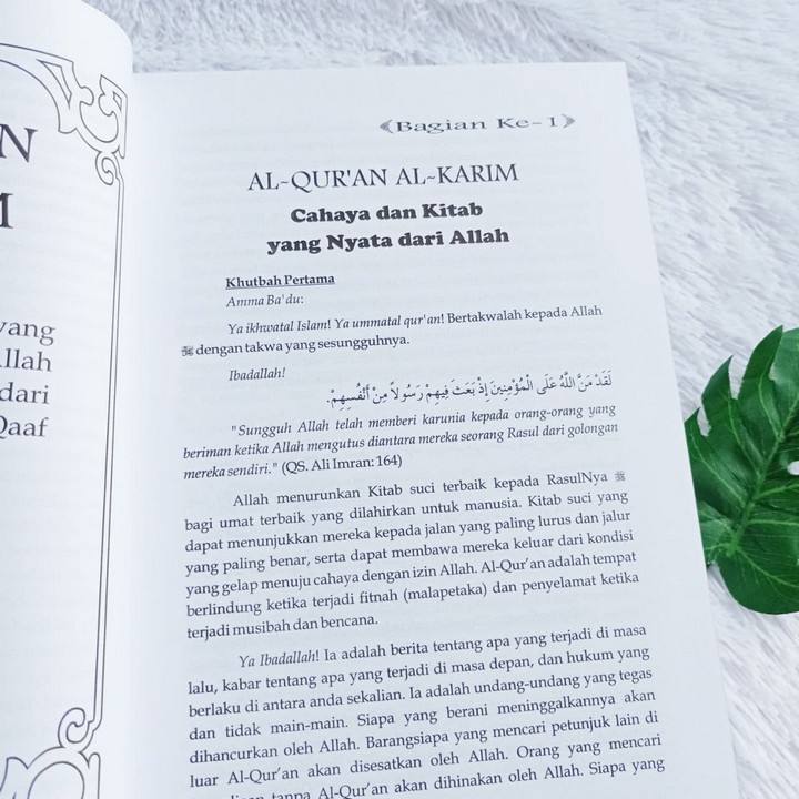 lnilah buku kumpulan khutbah yang sangat langka dan istimewa. Sebab buku ini memuat khutbah Jum’at yang langsung disampaikan dari mimbar Ka’bah di Masjidil Haram Makkah Al Mukarramah. Apalagi ia merupakan kumpulan khutbah Jum’at salah seorang imam Masjidil Haram yang terpopuler di Indonesia, bahkan seantero dunia. Seorang imam yang bacaan tartilnya sering menghiasi kolong langit setiap negeri kaum muslimin. Seorang qari’ yang bacaannya sangat merdu menyentuh qalbu dan lantunan doa-doanya membuat mata menangis haru. Seorang imam besar dan da’i yang sangat mendalam ilmunya. Dialah Syaikh Dr. Abdurrahman Abdul Aziz As-Sudais.