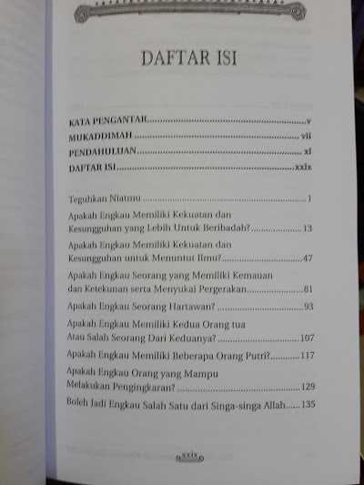 Segala puji hanya milik Allah Rabb semesta alam. tentunya masih dalam batasan syariat, Dalam buku ini kita diajak untuk mengoptimalakan potensi diri kita, supaya menjadi manusia yang berkarakter dan menemukan jati diri kita yang sesungguhnya, berikut di antara isinya: