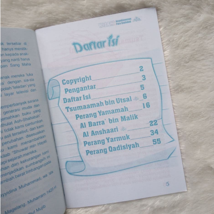 Anak-anakku yang pemberani…Inilah sebuah kisah untuk kalian. Kisah-kisah perang, perjuangan, dan pengorbanan yang dilakukan oleh para shahabat Nabi shallallahu ‘alaihi wa sallam. Kisah-kisah yang menunjukkan betapa hebatnya kepahlawanan para shahabat radhiallahu ‘anhum. Darah-darah bercucuran, harta benda, jiwa dan raga dikorbankan dalam rangka menegakkan agama Allah subhanahu wa ta’ala. Semboyan mereka adalah: ”Hidup mulia dengan kemenangan atau mati syahid demi meraih surga.” Ceritanya menarik, seru, dan mengharukan lho. Disertai dengan ilustrasi gambar-gambar yang menarik. Insya Allah kalian tidak akan bosan membacanya. Semoga engkau menjadi anak-anak yang pemberani dalam membela agama Allah subhanahu wa ta’ala.