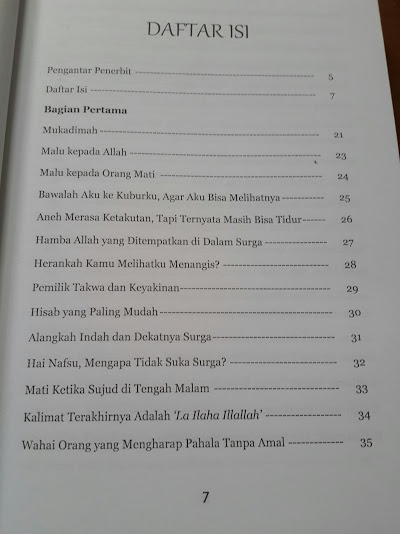 Buku ini berisi kisah-kisah orang-orang yang telah mempersiapkan diri menghadapi hari kiamat, bagaimana mereka mempersiapkan diri, apa amalan-amalan yang mereka lakukan..