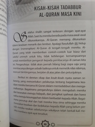 Segala puji bagi Allah Rabb semesta alam. Buku ini akan memaparkan kisah orang-orang yang sukses mentadabburi ayat-ayat Al-Quran, baik generasi terdahulu maupun sekarang, berikut di antara isinya: