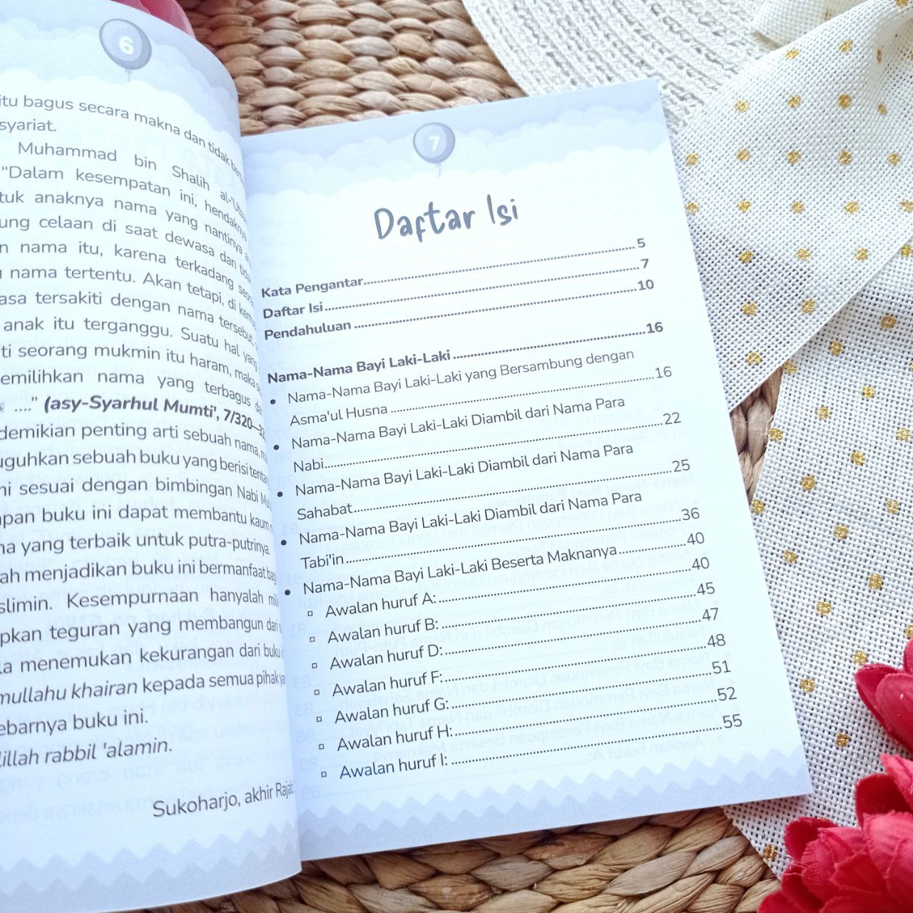 Nama seseorang menurut syariat Islam bukan sekadar nama biasa. Nama sangat berpengaruh terhadap perangai dan watak seseorang. Hendaknya orang tua atau yang berkedudukan sebagai orang tua memberi nama anaknya dengan nama-nama yang bagus, yaitu bagus secara makna dan tidak bertentangan dengan aturan syariat. Mengingat demikian pentingnya arti sebuah nama, maka kami hadirkan sebuah buku yang berisi tentang nama-nama bayi Islami sesuai dengan bimbingan Nabi Muhammad. Harapannya, buku ini dapat membantu kaum muslimin memilihkan nama yang terbaik untuk putra-putrinya.