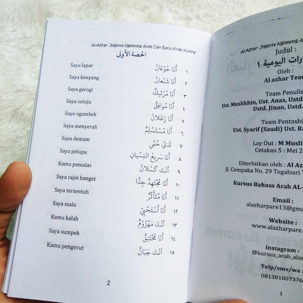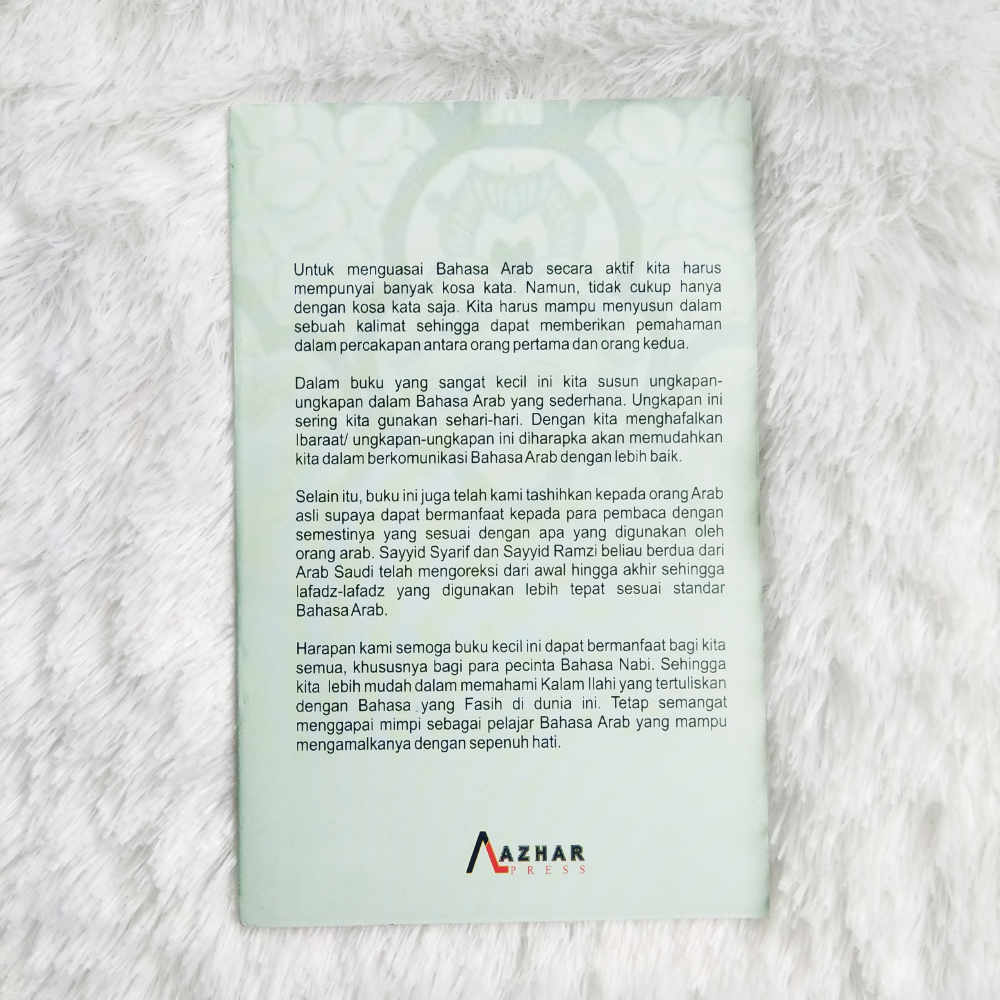 Dalam buku yang sangat kecil ini kita susun ungkapan-ungkapan dalam Bahasa Arab yang sederhana. Ungkapan ini sering kita gunakan sehari-hari. Dengan kita menghafalkan lbarat/ ungkapan-ungkapan ini diharapkan akan memudahkan kita dalam berkomunikasi Bahasa Arab dengan lebih baik.