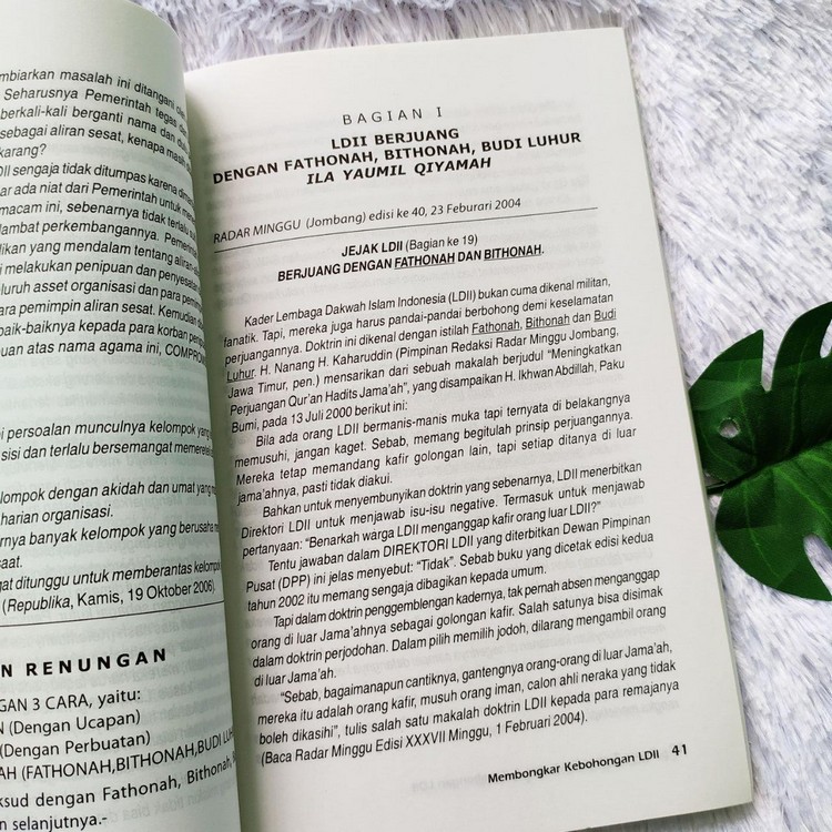 Buku ini mengupas secara tuntas kesesatan dan kebohongan yang dilakukan LDII berdasarkan data-data asli milik mereka. Sehingga, diharapkan dapat membuka mata para Ulama, Zu’ama, dan Umara, serta umat Islam pada umumnya, bahwa LDII adalah aliran sesat-menyesatkan dan sangat berbahaya bagi keutuhan umat , karena doktrin ajarannya sama dengan aliran Darul Hadits, Islam Jama’ah, LEMKARI, atau apapun namanya.