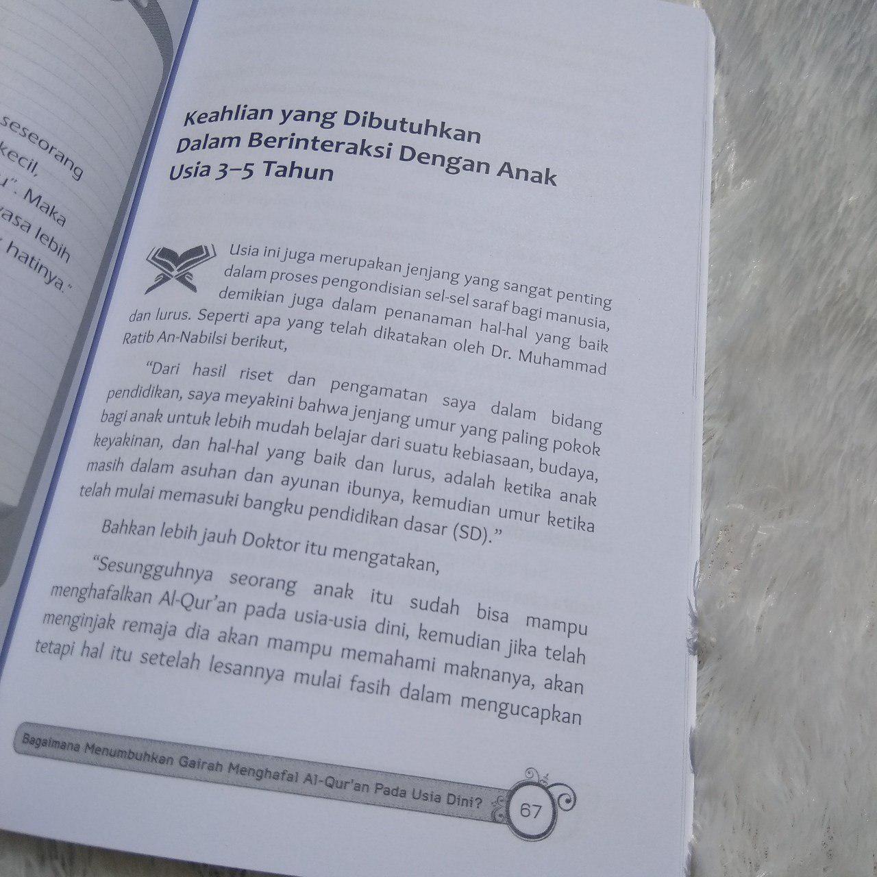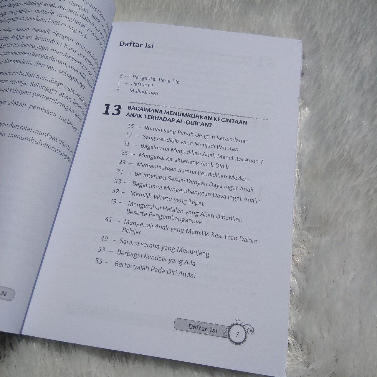 Dimulai dari menanamkan kecintaan terhadap Al-Qur’an, Dr. Sa’ad Riyadh juga menyajikan langkah-langkah mudah agar anak bergairah dalam menghafal Al-Qur’an, dengan memperhatikan psikologi anak dan metode-metode pendidikan yang kreatif, disertai dengan tabel-tabel evaluasi perkembangan anak.