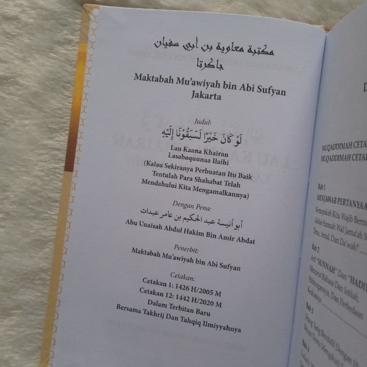 Judul Buku :Lau Kaana Khairan Lasabaquunaa Ilaihi (Kalau Sekiranya Perbuatan Itu Baik Tentulah Para Sahabat Telah Mendahului Kita Mengamalkannya