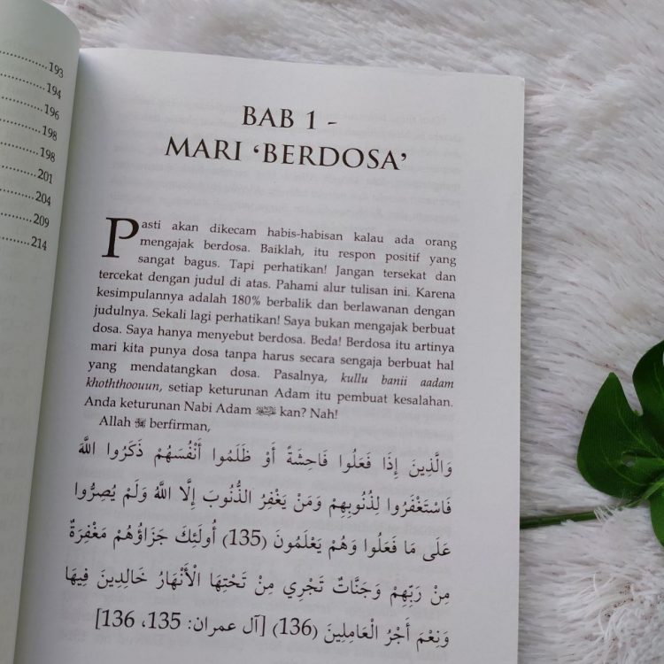 Buku ini tidak melaporkan bentuk ragam maksiat, juga tidak menjabarkan teori-teori taubat secara kaku. Buku ini membuat pembaca seolah seperti sedang berbicara dengan batin pembaca sendiri, seakan pembaca adalah yang menulis huruf demi huruf buku ini.
