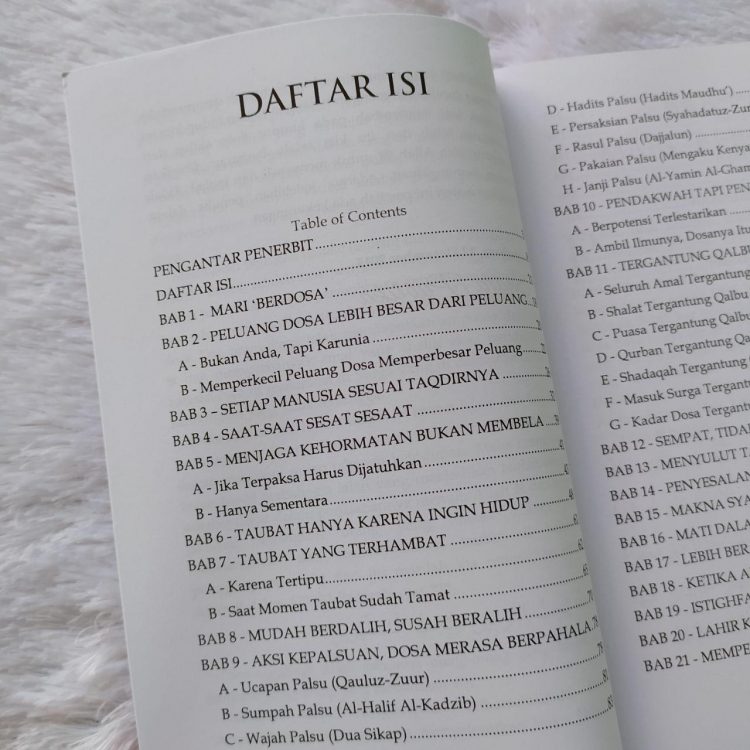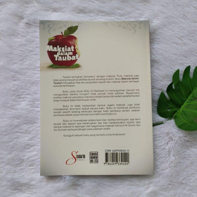 Buku ini memadukan antara teori dan realitas kehidupan; apa teori taubat dan seperti apa kebanyakan dari kita melaksanakan taubat; apa bentuk maksiat di lapangan dan bagaimana maksiat menurut Al-Quran dan As-Sunnah serta pandangan para salafush-shalih.