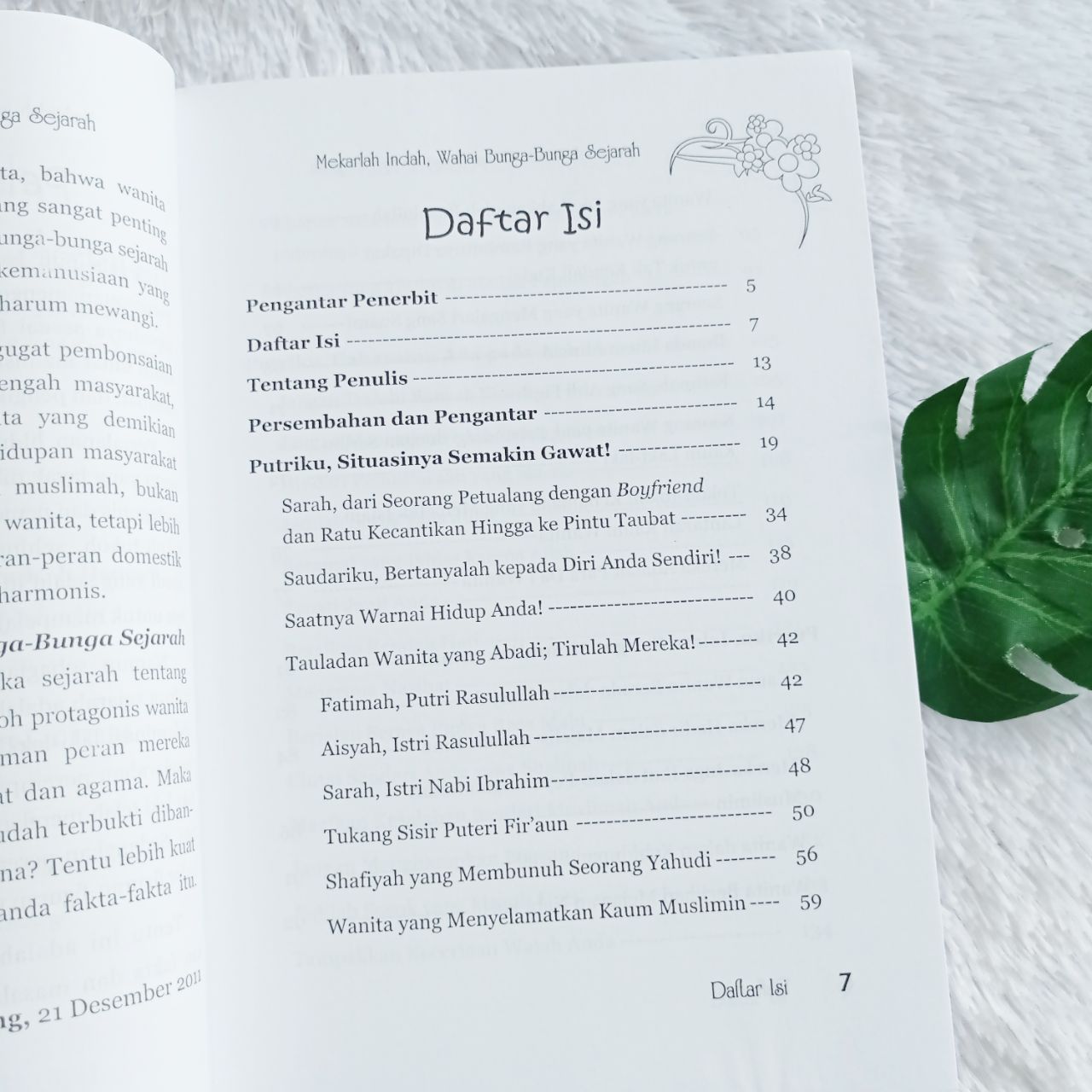 Buku Mekarlah Indah, Wahai Bunga-Bunga Sejarah menyajikan bukti-bukti bukan retrika sejarah tentang pemuliaan Islam terhadap wanita. Tokoh-tokoh protagonis sejara wanita yang bermekaran menebarkan keharuman peran mereka yang menyajikan potret peran muslimah bagi keluarga, masyarakat dan agama.