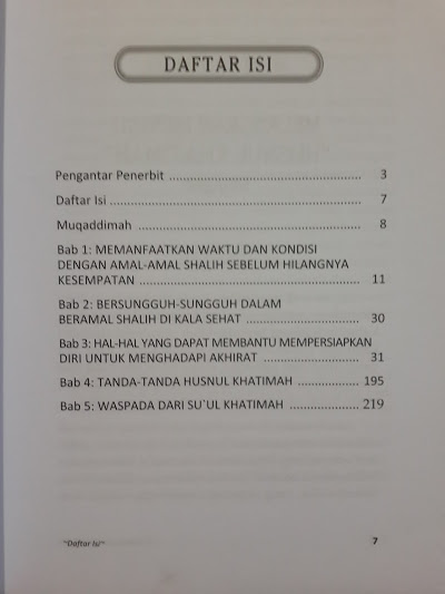 Segala puji hanya milik Allah Rabb semesta alam. Sungguh tiada keberuntungan di dunia ini bagi seorang insan kecuali meninggal dalam keadaan husnul khatimah. Bisa anda temukan berbagai langkah-langkah menuju husnul khatimah dalam buku ini, berikut di antara isinya: