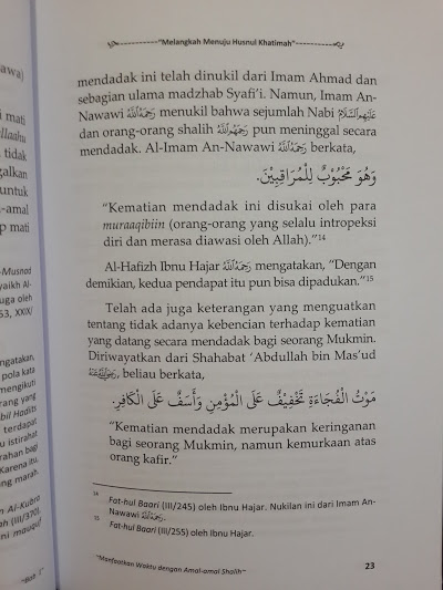 “Sering-seringlah mengingat kematian sesuatu yang akan menghancurkan kenikmatan. Sebab, tidaklah seorang hamba mengingat sesuatu itu ketika dalam kondisi terhimpit, melainkan sesuatu itu akan membuatnya merasa lapang. Tidaklah pula ia mengingat sesuatu itu ketika dalam kondisi lapang, melainkan sesuatu ituakan membuatnya merasa sempit.”