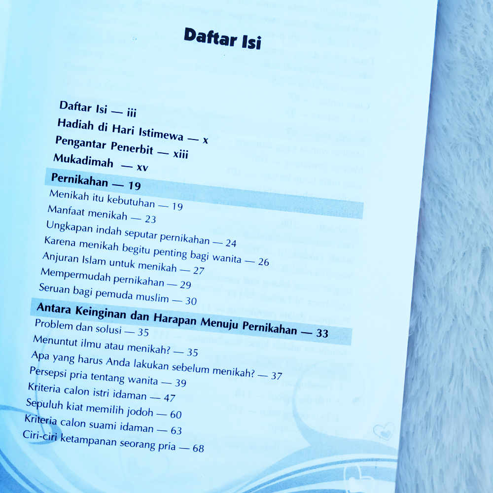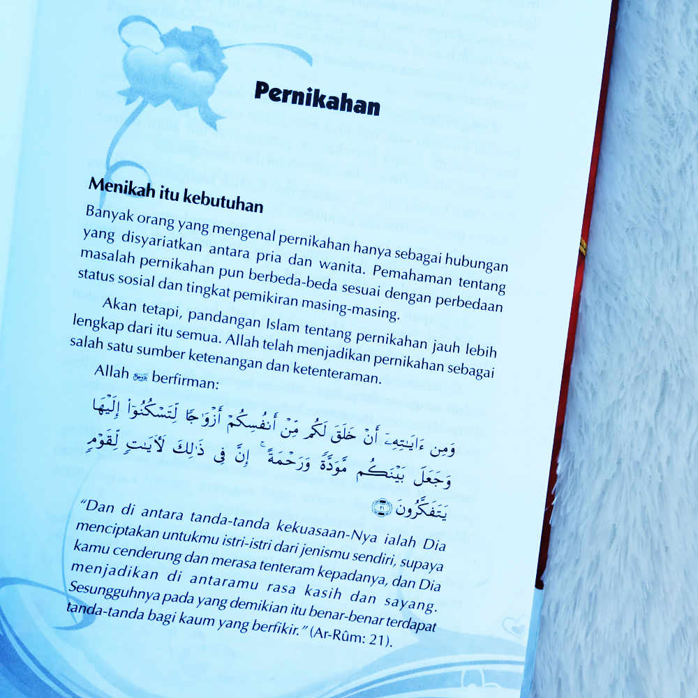 Pernikahan menyingkap tabir rahasia. Suami mengerti, istri yang dinikahi tidaklah semulia Khadijah, setakwa Aisyah, atau secantik Zulaikha. Dia hanyalah wanita akhir zaman yang bercita-cita menjadi shalihah. Pun demikian bagi istri. Ia memahami sang suami tidak semulia Nabi Muhammad, segagah Nabi Musa, atau setampan Nabi Yusuf. Dia hanya lelaki akhir zaman yang bercita-cita membangun keturunan yang shalih.