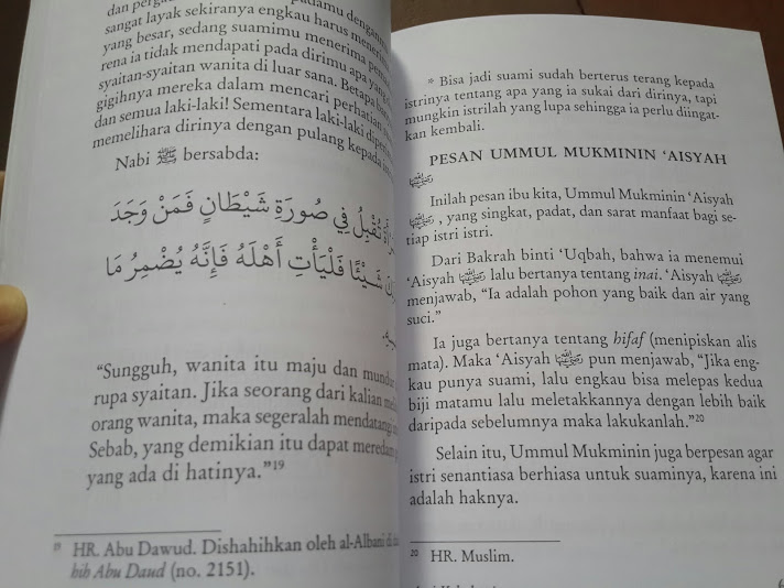 Buku ini merupakan pelajaran sangat bermanfaat dan masukan penting bagi pasangan yang ingin mewujudkan kebahagiaan dalam rumah tangganya, terlebih seorang istri karena buku ini lebih dominan menyeru kepada kaum wanita, karena wanita lah yang lebih banyak berperan dalam berhasil atau tidaknya rumah tangga.