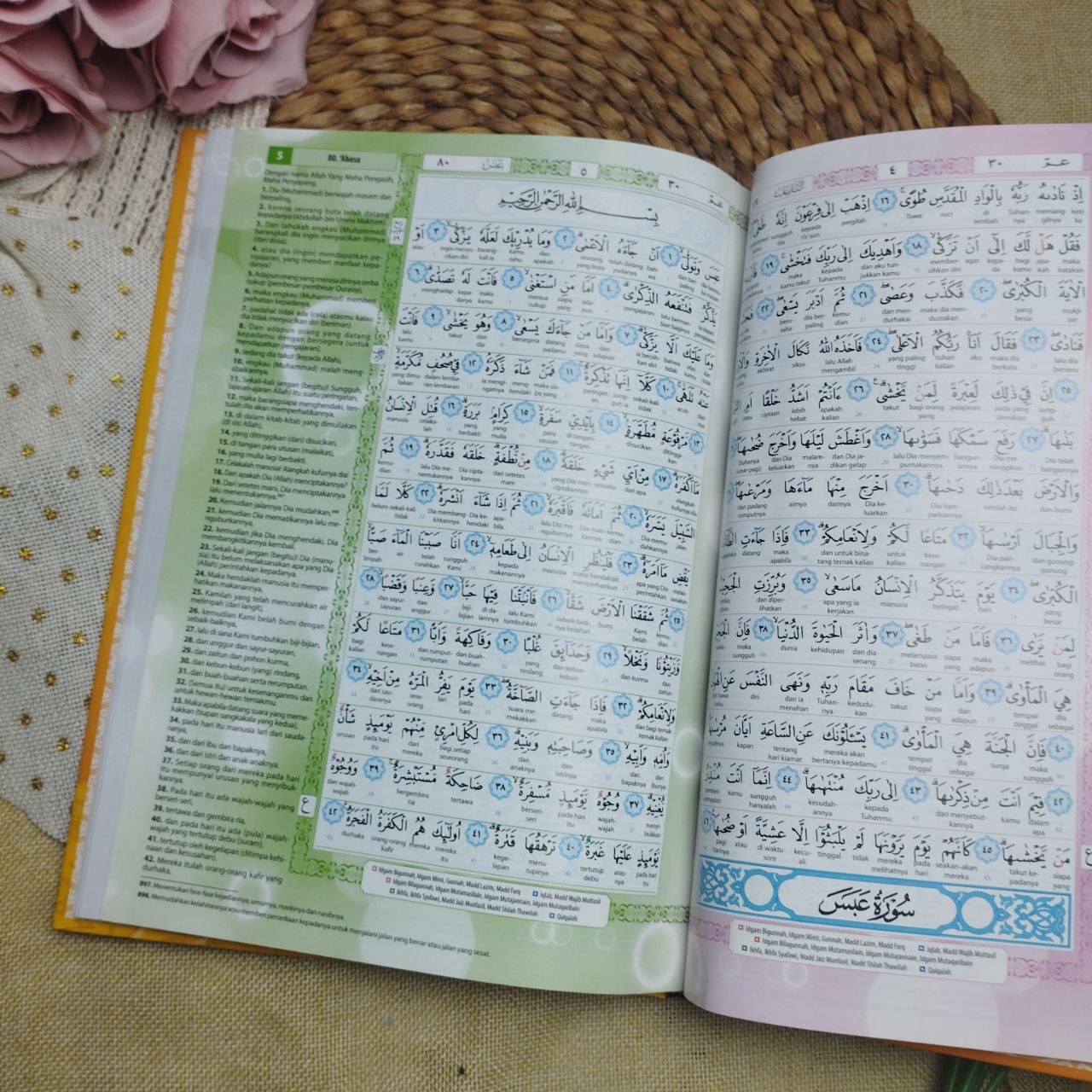Tebal: 58 halaman plus 24 halaman juz amma berwarna