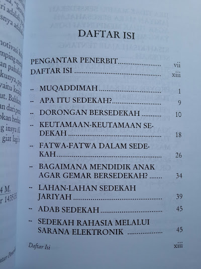 Segala puji bagi Allah. Kami memuji-Nya, memohon pertolongan dan memohon ampunan kepada-Nya. Buku kecil ini membahas tentang rahasia dan keajaiban shadaqah, berikut di antara isinya: