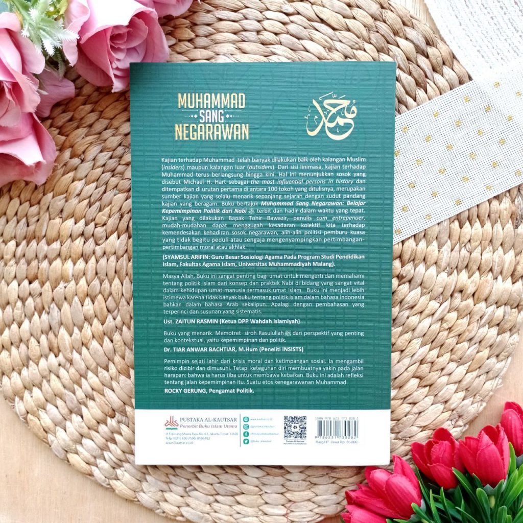 Kajian terhadap Muhammad telah banyak dilakukan baik oleh kalangan Muslim (insiders) maupun kalangan luar (outsiders). Dari sisi linimasa, kajian terhadap Muhammad terus berlangsung hingga kini. Hal ini menunjukkan sosok yang disebut Michael H. Hart sebagai the most influential persons in history dan ditempatkan di urutan pertama di antara 100 tokoh yang ditulisnya, merupakan sumber kajian yang selalu menarik sepanjang sejarah dengan sudut pandang kajian yang beragam. Buku bertajuk Muhammad Sang Negarawan: Belajar Kepemimpinan Politik dari Nabi SAW terbit dan hadir dalam waktu yang tepat. Kajian yang dilakukan Bapak Tohir Bawazir, penulis cum entrepenuer, mudah-mudahan dapat menggugah kesadaran kolektif kita terhadap kemendesakan kehadiran sosok negarawan, alih-alih politisi pemburu kuasa yang tidak begitu peduli atau sengaja mengenyampingkan pertimbangan-pertimbangan moral atau akhlak.