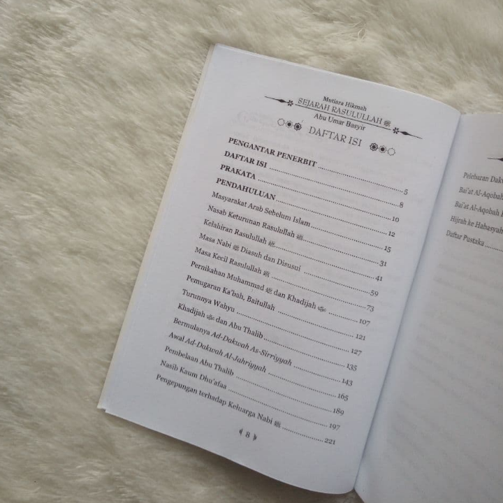 Laksana simpanan mutiara di dasar laut yang tidak habis dieksplorasi manusia, demikianlah mutiara kehidupan Rasulullah SAW yang entah sampai saat kapan umatnya mampu menggali mutiara hikmahnya. “Mutiara Hikmah Kehidupan Rasulullah” yang ditulis oleh Ustadz Abu Umar Basyier adalah cermin usaha sederhana dari hati salah satu umat yang mencintai beliau, insya Allah. Karena hati yang dipenuhi cinta kepada beliau pasti haus akan apapun yang terkait dengan beliau untuk digali mutiara-mutiara hikmahnya. Selama membaca!