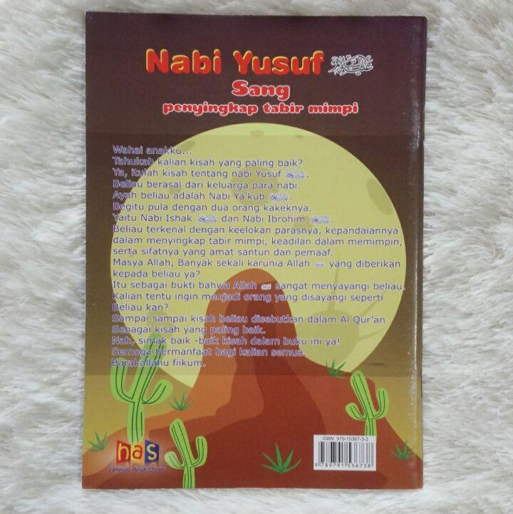 Simaklah… kisah yang sangat menakjubkan, mengharukan dan mengesankan, dari kisah seorang Nabi yang elok rupanya. Mengandung nilai-nilai yang luhur dan mempesona, berupa penanaman aqidah, akhlaq, kejujuran, keamanahan dan buah kesabaran. Disusun dengan bahasa anak-anak, disertai dengan gambar yang menarik, persembahan untuk sang buah hati.