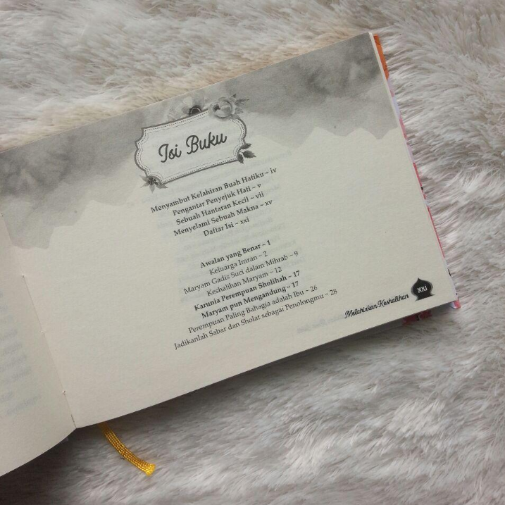 Setiap halaman mengisahkan bagaimana Maryam keseharian seorang perempuan yang menjaga kesucian dan bagaimana dirinya menikmati setiap proses demi proses persalinan hingga melahirkan Isa Alaihi Salam.