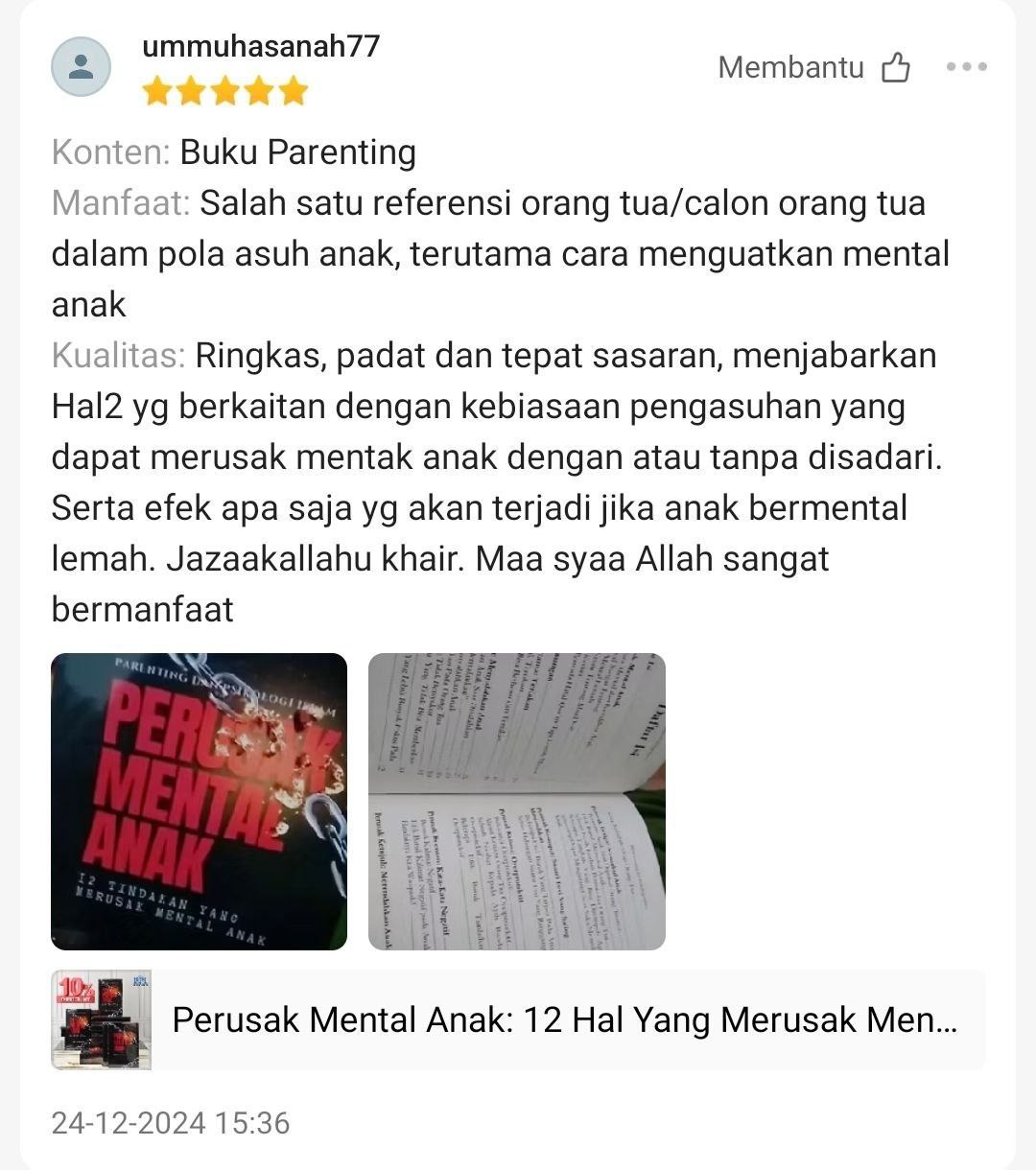 Buku ini hadir sebagai peringatan lembut sekaligus panduan bijak agar kita tidak merusak, tapi justru membangun mental anak dengan kasih sayang dan pemahaman.