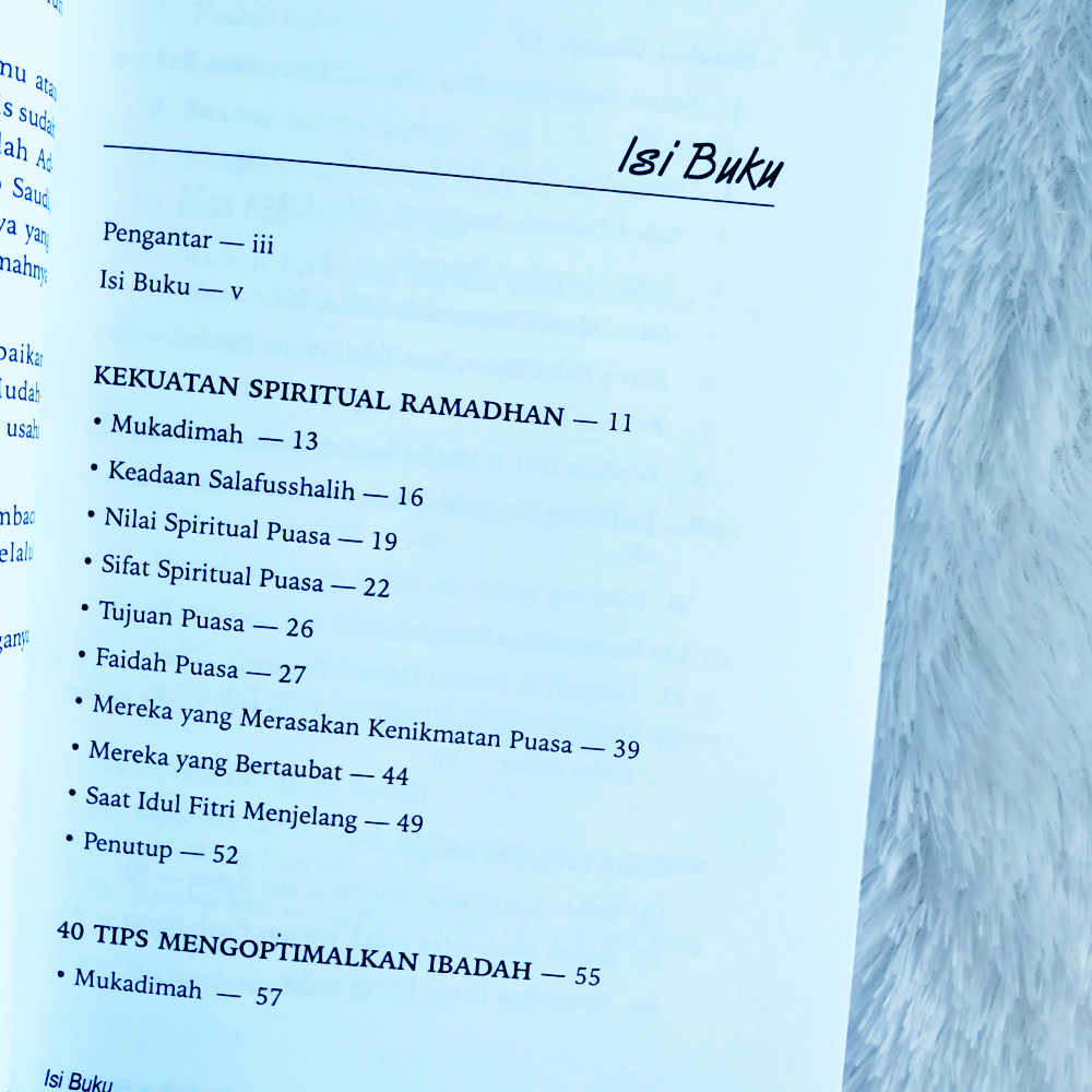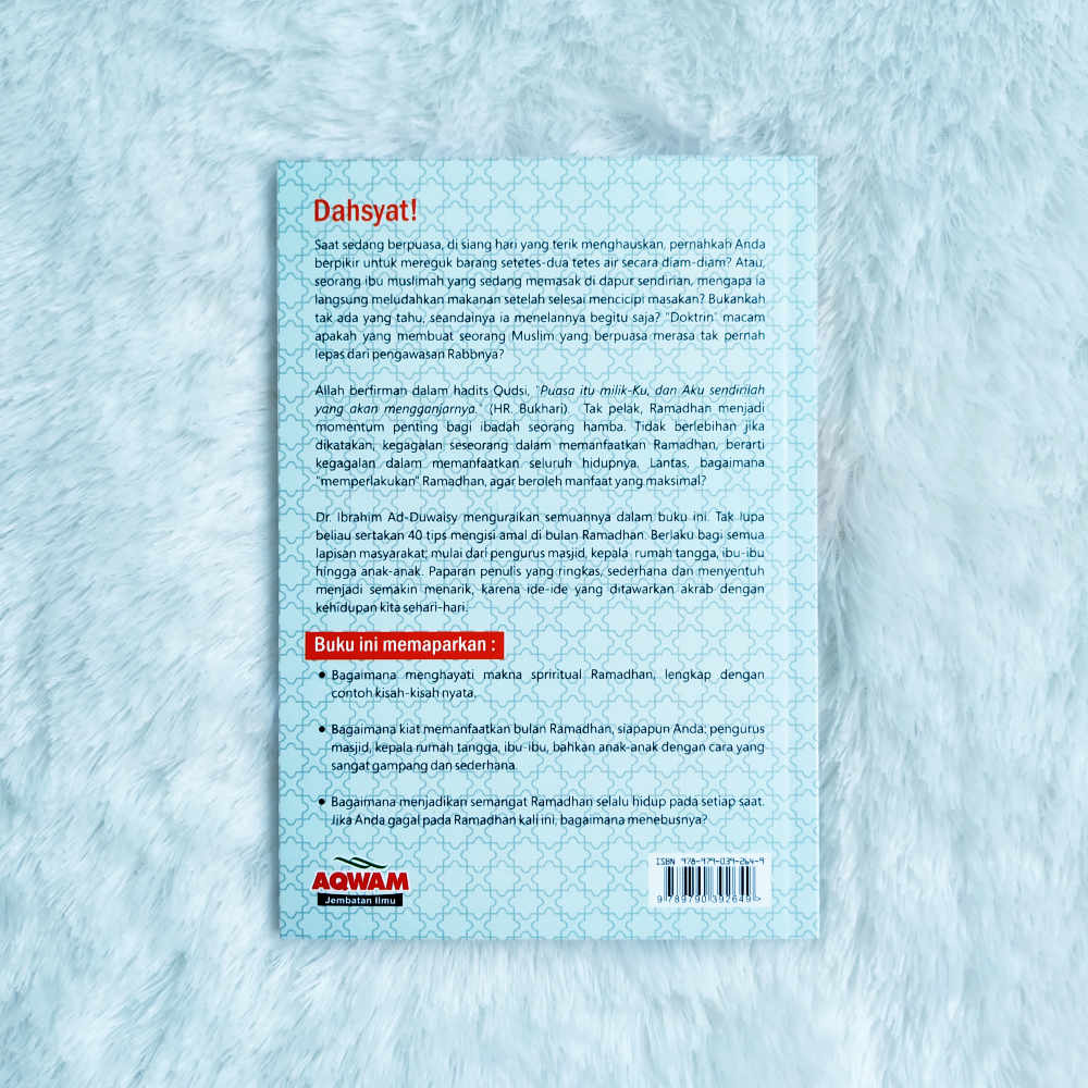 Dr. Ibrahim Ad-Duwaisy menguraikan semuannya dalam buku ini. Tak lupa beliau sertakan 40 tips mengisi amal di bulan Ramadhan. Berlaku bagi semua lapisan masyarakat; mulai dari pengurus masjid, kepala rumah tangga, ibu-ibu hingga anak-anak. Paparan penulis yang ringkas, sederhana dan menyentuh menjadi semakin menarik, karena ide-ide yang ditawarkan akrab dengan kehidupan kita sehari-hari.
