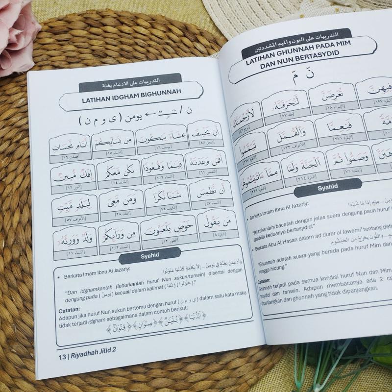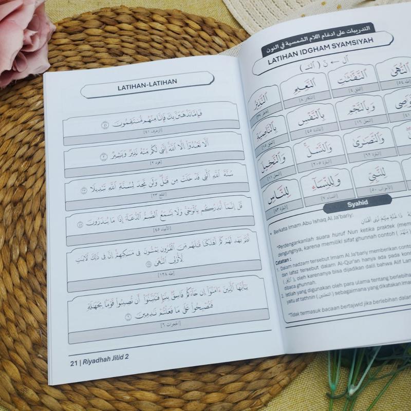 Kitab Riyāḍah Jilid 2 hadir sebagai kelanjutan dari jilid pertama, yang sebelumnya membekali pembaca dengan dasar-dasar pengucapan huruf Arab (ḥalāt al-ḥurūf al-‘Arabiyyah). Pada jilid kedua ini, pembelajaran diarahkan pada pendalaman ilmu tajwid melalui latihan-latihan praktis yang lebih teknis namun tetap ringkas, sehingga mudah dipahami dan diterapkan oleh berbagai tingkat pembelajar.