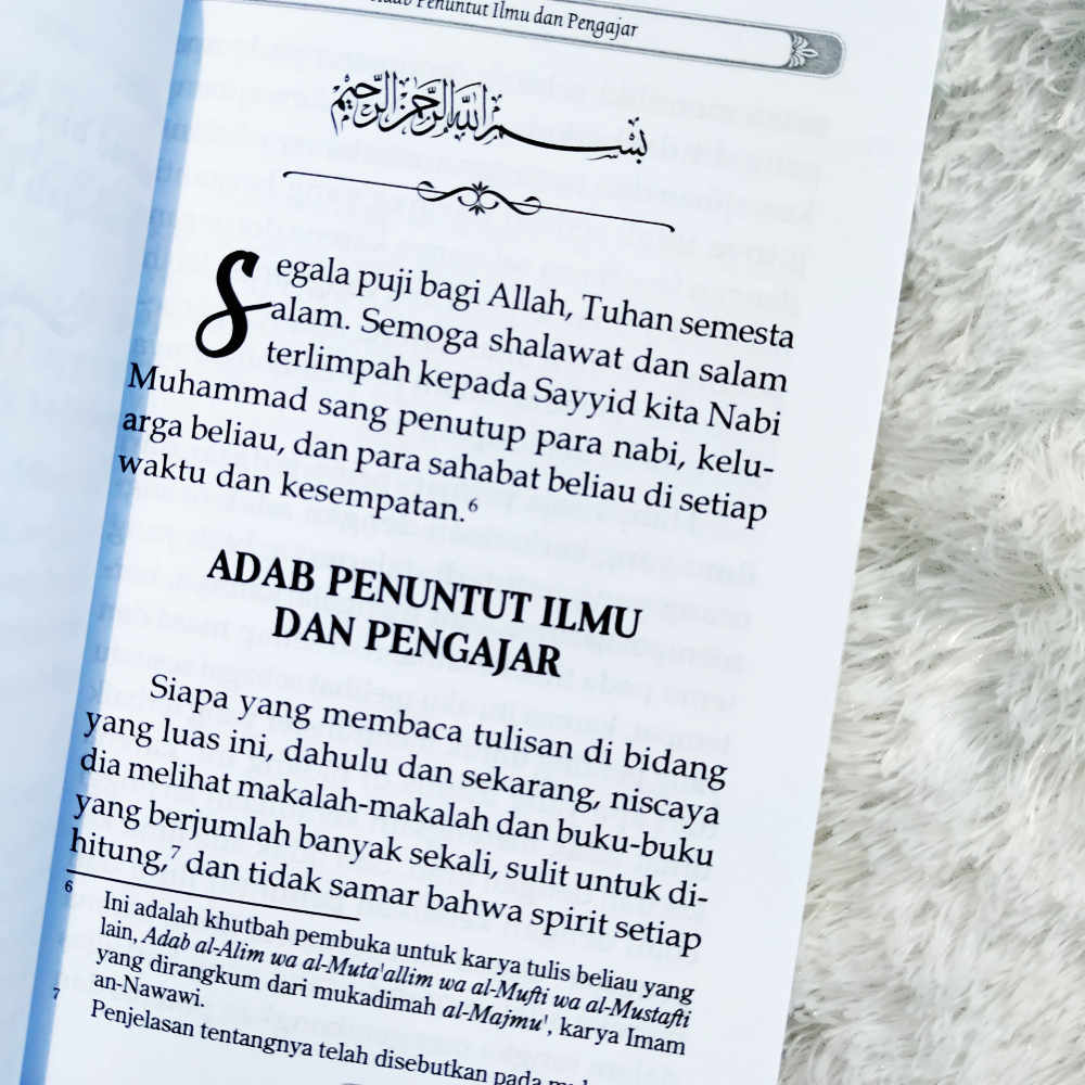 Buku ini menarik untuk dikaji, karena merupakan hasil rangkuman penulis terhadap mukadimah kitab al-Majmu’ Syarah al-Muhadzdzab, karya ulama besar, Imam an-Nawawi dari kitab tersebutlah penulis berhasil mengeluarkan mutiara-mutiara adab yang berharga bagi penuntut ilmu dan pengajar. Semoga kita bisa mengambil faidah dari Buku ini.