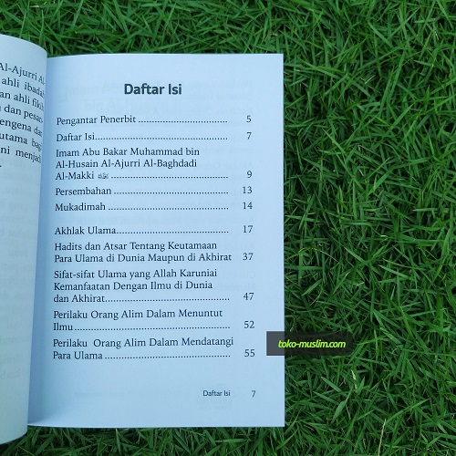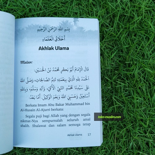 Buku saku Akhlak Ulama Pewaris Nabi Wasiat Imam Al-Ajurri ini merupakan ringkasan dari kitab Akhláq Al-Ulamá’ karya Abu Bakar