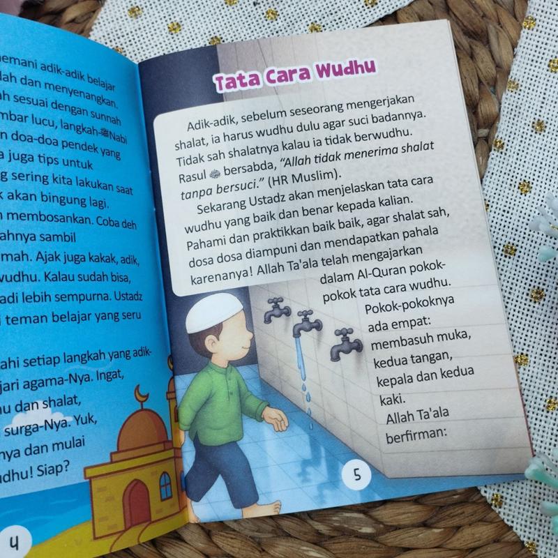 Disajikan dengan bahasa yang ringan, ilustrasi berwarna, dan panduan bertahap, buku ini membantu anak memahami mulai dari wudhu, gerakan shalat, hingga dzikir setelah shalat. Setiap bagian dibuat agar anak bisa belajar sambil melihat dan meniru dengan lebih percaya diri.