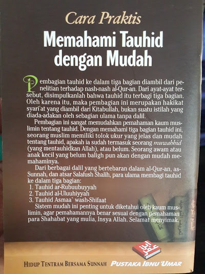 Buku saku ini membahas suatu permasalahan paling penting dari ibadah yaitu tauhid, pembagian tauhid menjadi tiga, sehingga memudahkan pemahaman pembaca nya. Berikut cuplikan dari buku ini: