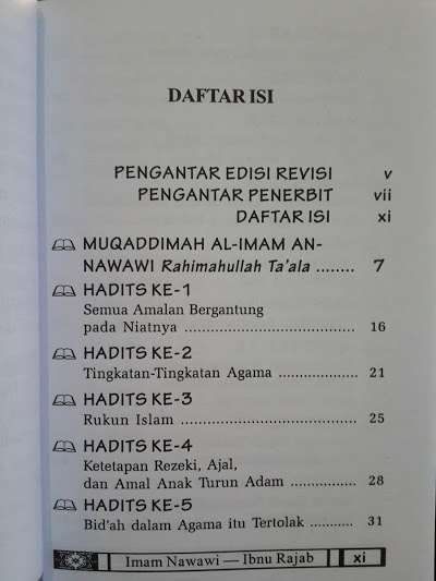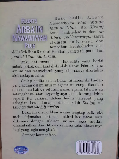 Buku ini adalah buku kumpulan hadits arbain yang dikumpulkan oleh Imam Yahya bin Syaraf yang lebih banyak di kenal oleh sebutan Imam An-Nawawi, buku ini berisi 42 hadits yang mencakup hadits-hadits pokok dalam islam, kemudian dilengkapi dengan 8 hadits yang ditambahkan oleh Al-Hafizh Ibnu Rajab al-Hanbali, sehingga lengkaplah menjadi 50 hadits.
