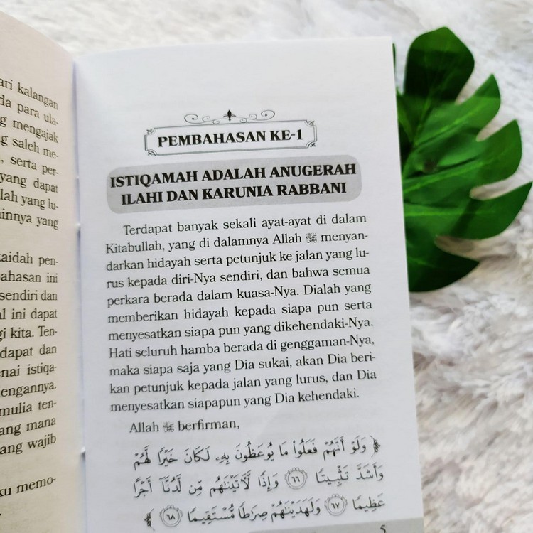 Buku di tangan pembaca ini sekalipun kecil ukurannya namun merupakan jawaban tuntas dan solusi bagi mereka yang selama ini mengeluhkan inkonsistensi ketaatan kepada Allah. Penulisnya adalah seorang ulama kontemporer kenamaan yang tidak diragukan lagi kedalaman ilmunya. Beliau dengan sangat meyakinkan menjelaskan segala hal yang berkaitan dengan istiqamah; mulai dari hakikat, manfaat, faktor penunjang, problem hingga solusinya.