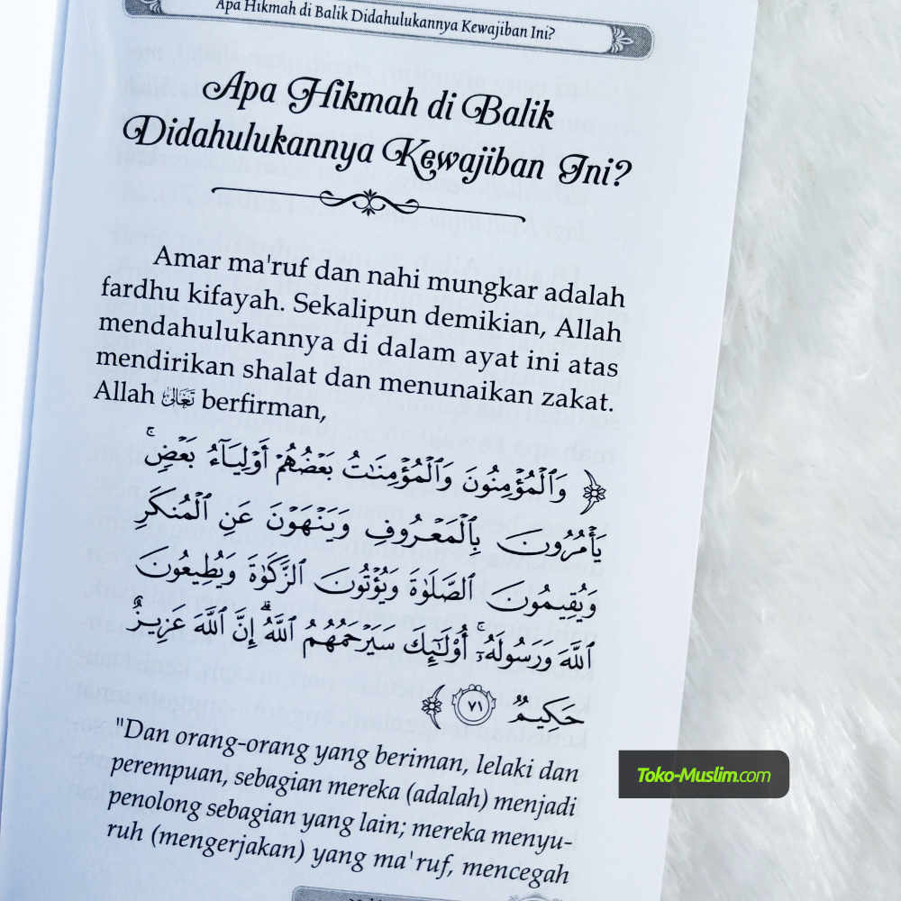 Buku ini menggiatkan amar ma’ruf nahi mungkar, memberi bimbingan tata cara amar ma’ruf nahi mungkar agar tidak salah jalan atau melampaui batas sebagaimana kaum Khawarij, dan mengajarkan kita menerapkan amar ma’ruf nahi mungkar pada tiap tahapannya, dengan hikmah, nasihat baik, dan perdebatan yang elegan.