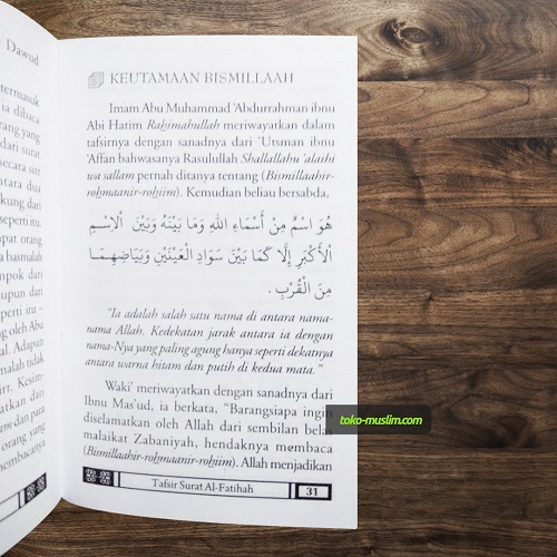 Buku saku Tafsir Surat al-Fatihah ini merupakan terjemahan dari Tafsiir al-Faatihah dari karya Ibnu Katsir Rahimahullah. Buku ini diterbitkan dalam bentuk ukuran kecil/saku agar memudahkan pembaca untuk dapat mempelajari dan memahaminya serta mengambil hikmah yang terkandung di dalamnya.
