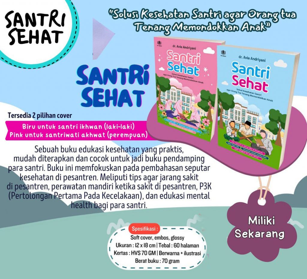 Buku ‘Santri Sehat’ merupakan sebuah buku edukasi kesehatan yang praktis, mudah diterapkan dan cocok untuk jadi buku pendamping para santri.