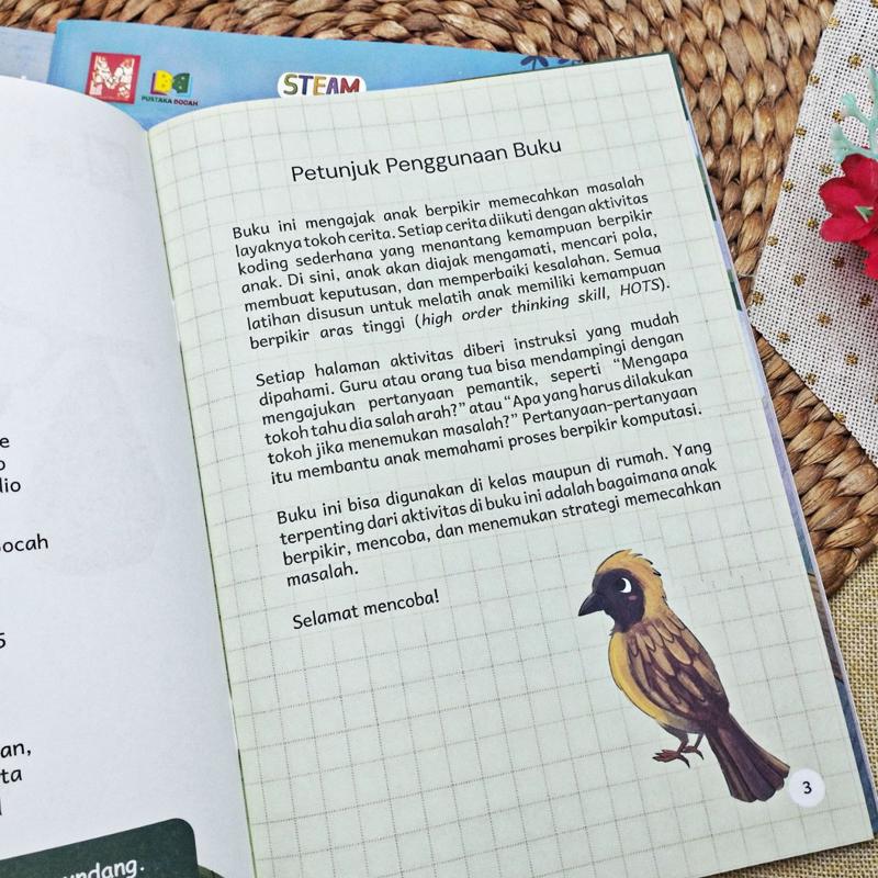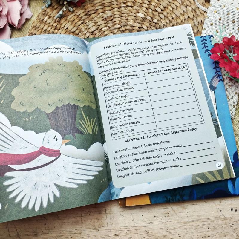 Seri ini membantu anak membangun fondasi penting di era digital bukan dengan teknologi berlebihan, tetapi melalui kisah yang hidup di setiap halaman. Anak belajar menyusun langkah, memahami sebab-akibat, berpikir runtut, dan mencari solusi dengan cara yang menyenangkan.