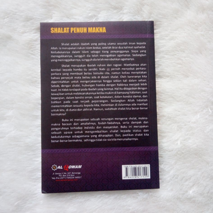 Buku “Shalat Penuh Makna” ini merupakan sebuah renungan mengenai shalat, makna-makna bacaan dan amaliahnya, faidah-faidahnya, serta dampak dan pengaruhnya terhadap individu dan masyarakat. Buku ini merupakan sebuah upaya untuk mengembalikan shalat kepada status dan kedudukannya sebagaimana yang diharapkan. Dan, pastikan shalat kita benar-benar bermakna, sehingga tidak sia-sia kita menunaikannya.