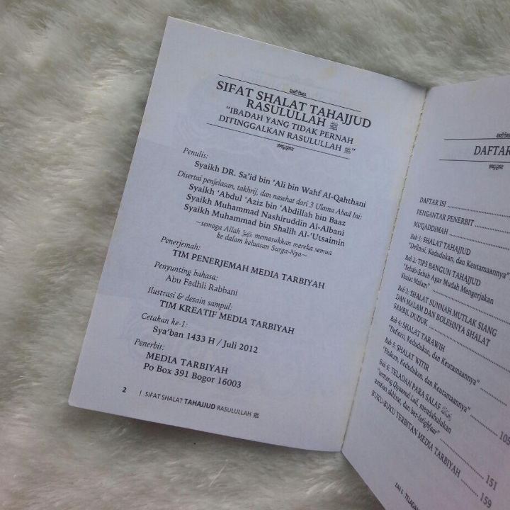 Dalam buku ” Sifat Shalat Tahajjud Rasulullah” ini akan dijelaskan mengenai sifat shalat tahajjud nya nabi, meliputi pengertian akan makna shalat tahajjud, keutamaan dari shalat ini, kapan waktu yang paling utama dalam melaksanakannya, jumlah rakaat, adab-adab dalam shalat tahajjud serta sebab-sebab yang dapat membantu seorang muslim dalam menunaikannya.