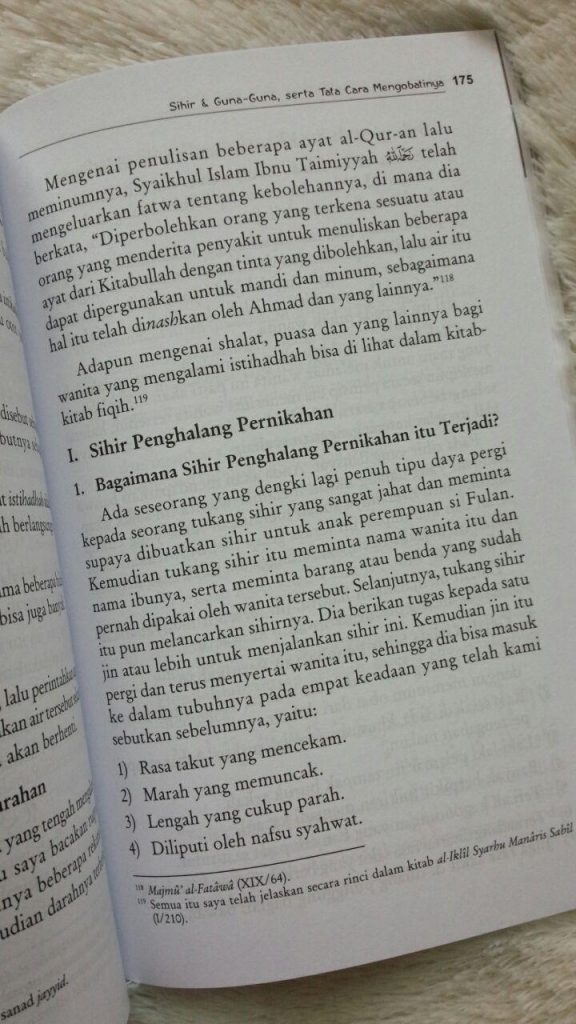 Kita melihatpraktik sihir telah merajalela dikalangan masyarakat, serta banyak orang yang mudah mendatangi tukang sihir dengan berbagai cara dan tujuan. Berdasarkan hal itu penulis membahas sihir & guna-guna juga cara penangkalanya dengan Al-Qur’an dan As-Sunah, Dengan kajian yang menarik dan sistematis, berdasarkan nash-nash yang rajih. dalam buku ini dijelaskan definisi sihir, metode-metode tukang sihir dalam menghadirkan jin, Hukum sihir dalam syariat agama, bagaimana cara menangkal sihir, dan juga metode untuk mengobati dari sihir.
